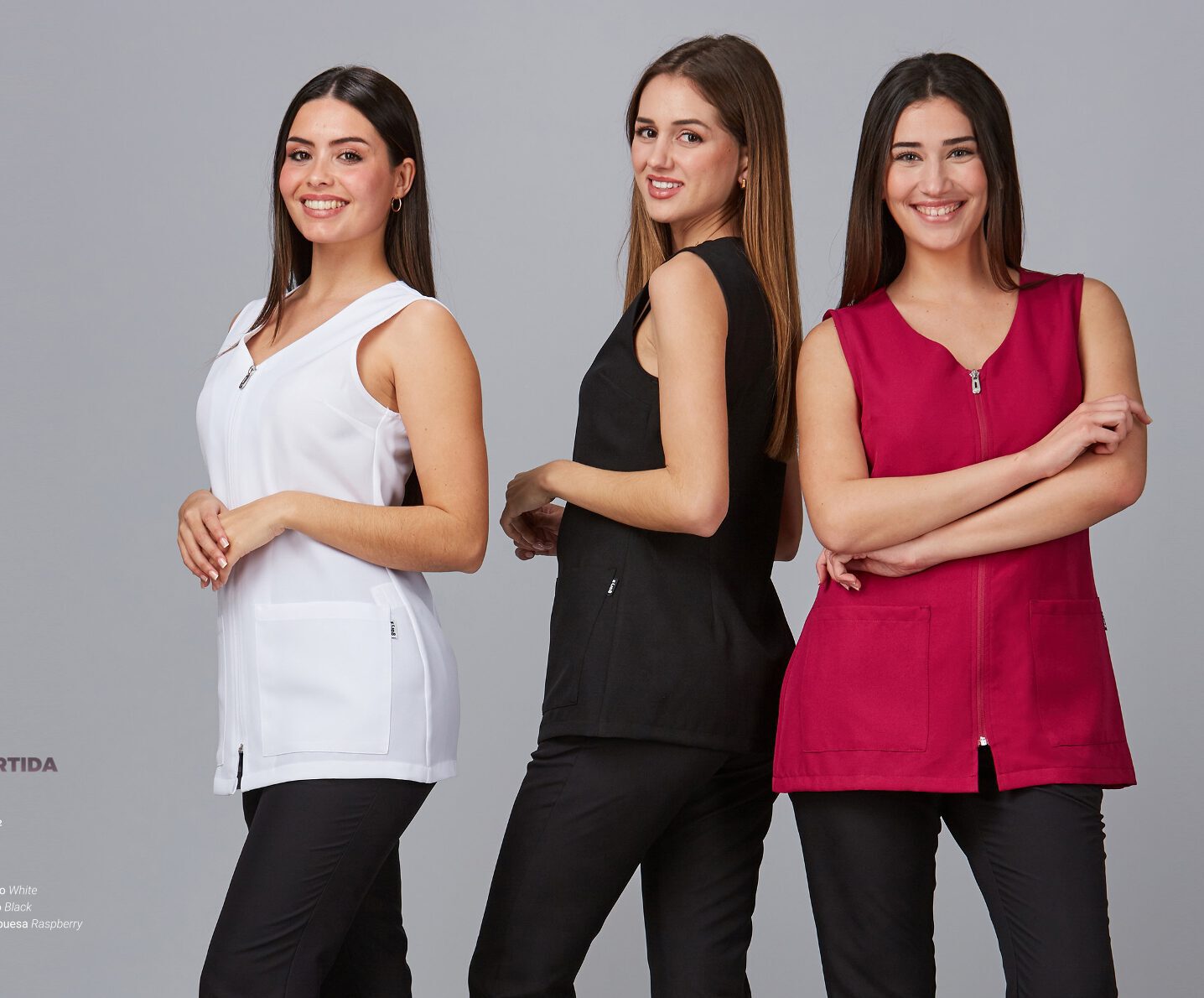 Prendas especialmente diseñadas para profesionales de la sanidad (pijamas, batas y complementos), para clínicas estéticas y veterinaria, spas y balnearios o limpieza.