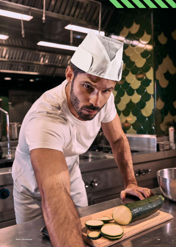 Ofrecemos una amplia variedad de soluciones tanto para cocina como para sala. Nuestro surtido incluye desde chaquetas de cocina, pantalones o camisas hasta delantales o gorros para combinar en más de 25 colores diferentes. Como novedad en esta edición contamos con nuevos pantalones chinos para sala.