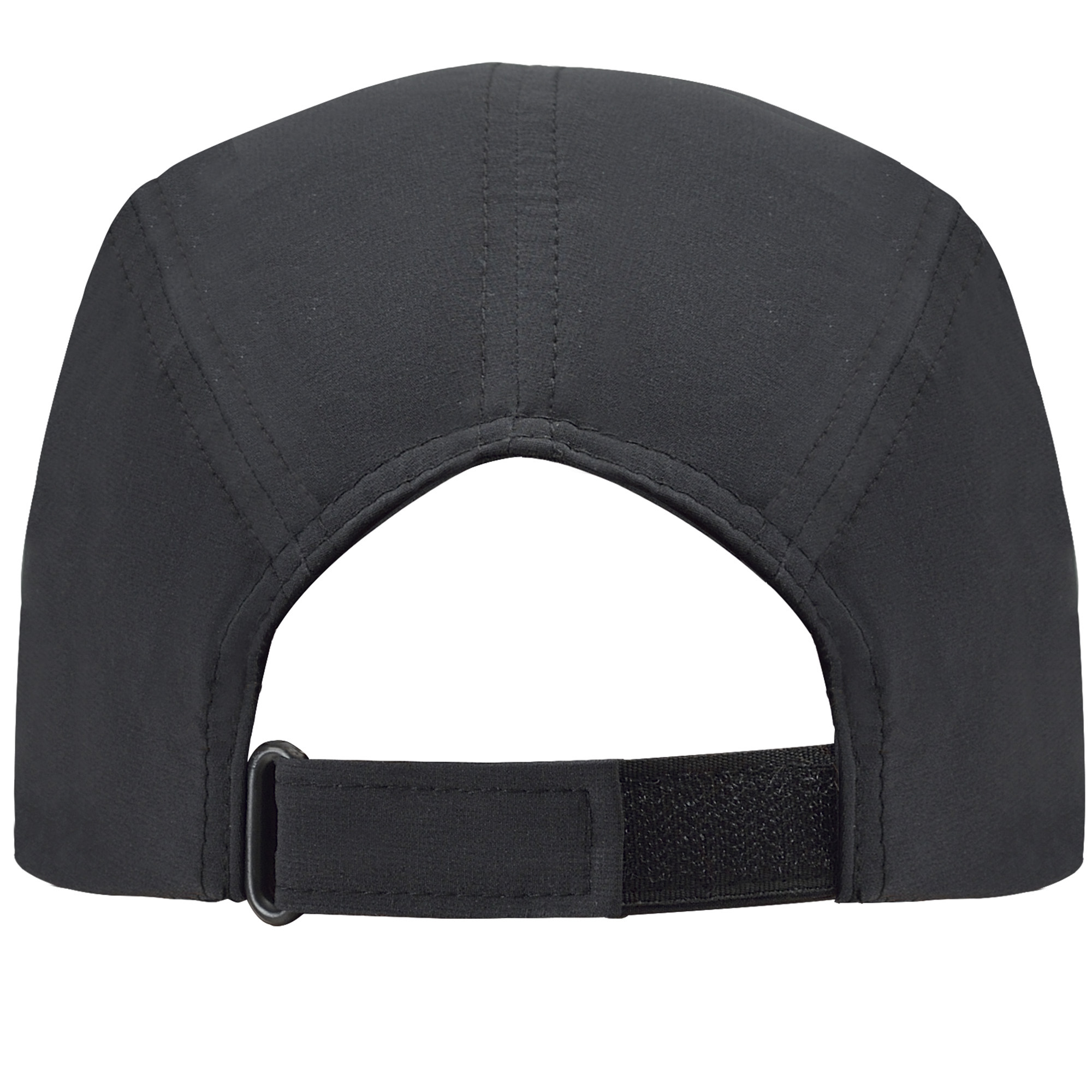 Gorra técnica de tres paneles. Tejido ligero y transpirable con cierre ajustable de velcro en la parte posterior.